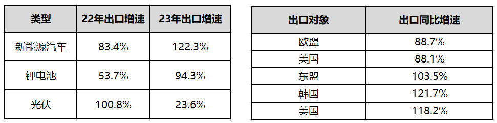 據(jù)海關(guān)統(tǒng)計,一季度我國貨物貿(mào)易進出口總值9.89萬億元人民幣,同比增長4.8%。其中,出口5.65萬億元,同比增長8.4%;進口4.24萬億元,同比增長0.2%,其中“新三樣”( 新能源汽車、鋰電池、光伏)表現(xiàn)搶眼合計出口2646.9億元,同比增長66.9%,占我國出口比重同比提升1.7個百分點,達到4.7%?!靶氯龢印敝饕隹趯ο鬄闅W盟、美國、東盟、韓國和英國,這五大市場出口規(guī)模占“新三樣”出口總額的71.6%;