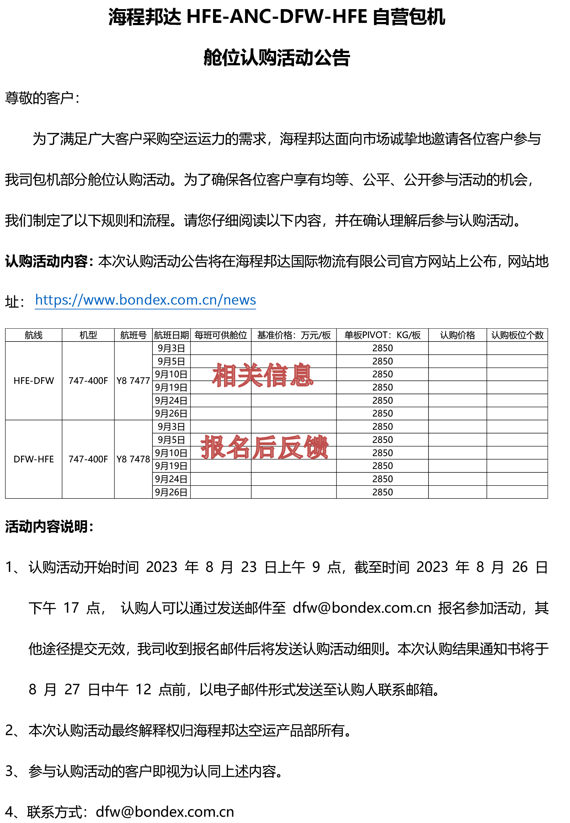 海程邦達(dá) HFE-ANC-DFW-HFE 自營(yíng)包機(jī) 艙位認(rèn)購(gòu)活動(dòng)公告
