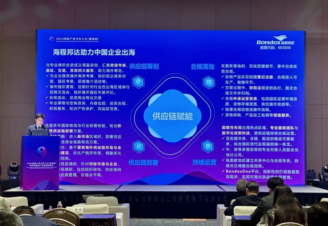 3月20日下午,由中國機電產(chǎn)品進出口商會、新加坡中華總商會主辦、中國電建集團國際工程有限公司、越南春橋控股公司聯(lián)合主辦的2024國際產(chǎn)業(yè)合作大會(新加坡)“園區(qū)合作—新型工業(yè)園區(qū)創(chuàng)造經(jīng)濟發(fā)展新勢能”分議題研討在新加坡博覽中心成功舉辦,海程邦達供應鏈管理股份有限公司董事長唐海出席并發(fā)表了精彩的致辭演講。