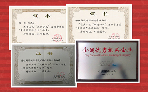 我司榮獲“2012全國優(yōu)秀報關企業(yè)”稱號