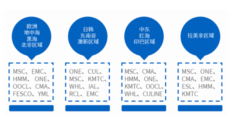 • 航線管理區(qū)域化:海運航線暢達全球,以客戶需求為核心,將主要運輸航線進行細化管理,分成東南亞澳新、中紅印、歐地黑、拉美非航線,為客戶提供最優(yōu)解決方案